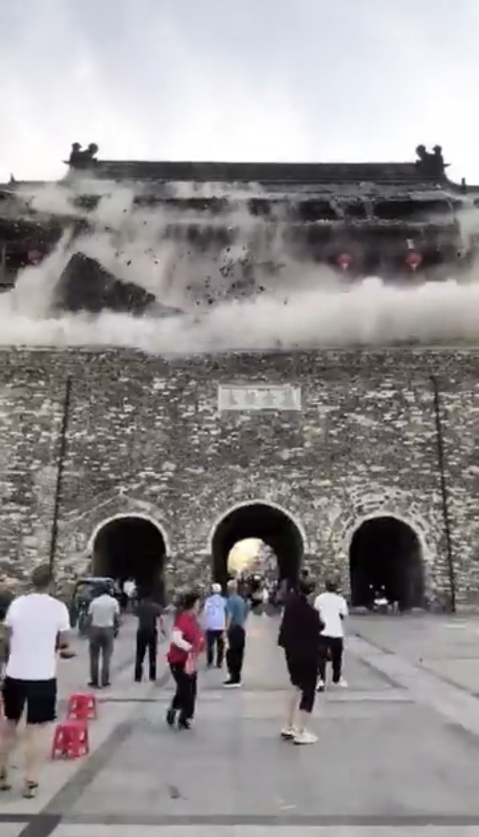 🇨🇳 В Китае обрушилась крыша исторической башни: Предвестник беды или просто несчастный случай? 🤔