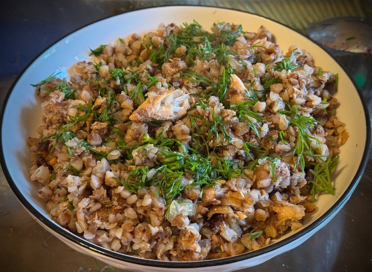 Гречневая каша с тунцом! Пробовали? Как так можно? 😉 Обещайте, сегодня, исправится! Тем более, что продукты есть в любом магазине Ингредиенты (2 порции): 1️⃣ Отварная гречка - 400 гр 2️⃣ Тунец консервированный в собственном соку - 1 ж.б (185 гр) 3️⃣ Лук репчатый - 1 шт средний 4️⃣ Масло для обжарки - 1 ч.л 5️⃣ Соль/перец 6️⃣ Любимая зелень Приготовление: 1. Обжарьте, на сковороде, резаный кубиками лук. 2. Добавьте тунца, можно с соком из банки. Слегка обжарьте 3. Добавьте гречку, посолите, поперчите и перемешайте. Прогрейте 4. Подавайте посыпав любимой зеленью. Это очень просто и очень вкусно! Калорийность большой порции - 395 кКал Б - 33,5; Ж - 7,6; У - 42,6 Ангела за трапезой! Ваш ПП - Православное Питание - канал о пище, не только телесной, но и духовной Как искать рецепты? Жми, читай, выбирай ⏬️ Поиск рецептов на канале #пост #смаслом #горячее #каша #гречка #тунец #просто