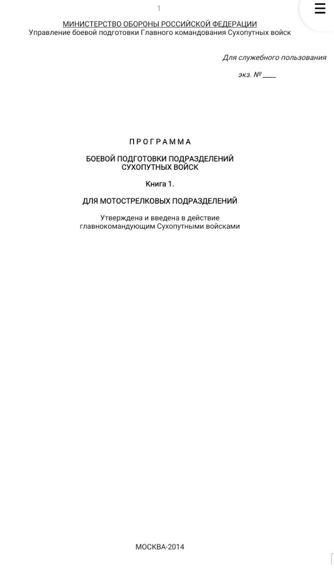 Продолжая предыдущий пост про строевую подготовку — расчет часов по предметам обучения на учебный год (т.е. 10 месяцев). Регламентируется это документом под названием "Программа боевой подготовки". В конкретном случае представлена программа БП Сухопутных войск (для мотострелковых подразделений). Но в книгах для остальных видов (родов) войск количество часов строевой подготовки точно такое же. И, как видно, количество часов, отводимое на строевую подготовку, вообще не блещет размахами. Всего 25 учебных часов на весь срок службы военнослужащего по призыву. Т.е. это по 12-13 часов на учебный период (т.е. на 5 месяцев). Если провести какое-то усреднение для понимания, то строевая подготовка проводится (ну или должна проводиться) 1 раз в 2 недели. Если у кого-то было сильно больше, то тут вопрос к командованию подразделения и воинской части. Но разводы, выдвижения в столовую и обратно, вечернюю прогулку и т.д. никто не отменял. Но они и проводятся не в часы занятий. #боевая_подготовка@dr_