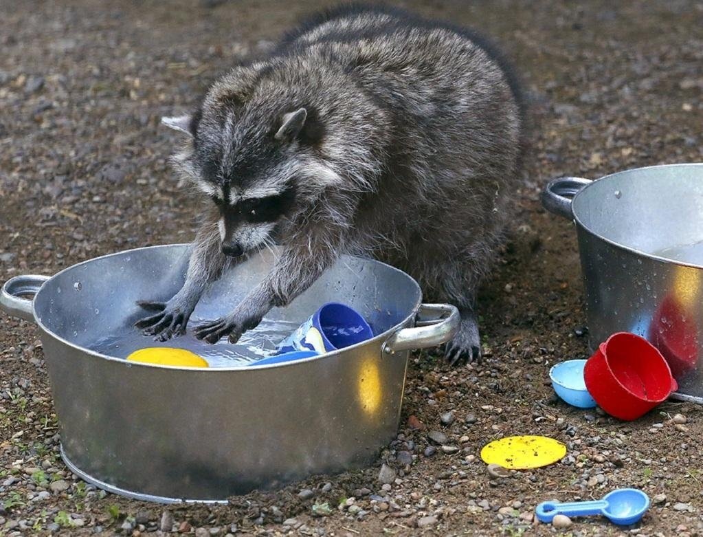 Он умный: открывает замки, двери, мусорные баки и даже научился откручивать бутылки. Память — как у хорошего официанта: помнит, где прятал еду, через месяц.