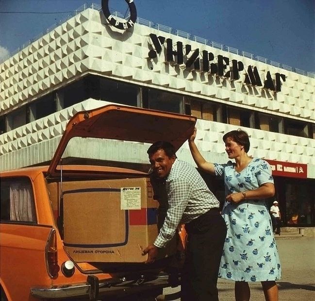 Погрузка цветного телевизора «Фотон-716» в «Москвич-2137». Симферополь. 1978 год.