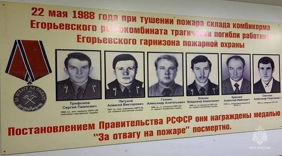 Вечная память героям-огнеборцам 37 лет назад, 22 мая 1988 года, во время страшного пожара на складе комбикорма в Егорьевске трагически погибли шестеро наших товарищей. Они до конца оставались верны своему долгу, спасая жизни других. Родные, коллеги, ветераны и представители пожарных гарнизонов собрались у мемориала, чтобы почтить их память. Цветы, венки и минута молчания — так мы говорим: «Мы помним. Мы гордимся». Анатолий Краснов, Александр Светлов, Сергей Трифонов, Александр Галкин, Алексей Петухов, Владимир Кленин — ваши имена навсегда вписаны в историю МЧС России. @mchs50 @mchs_official