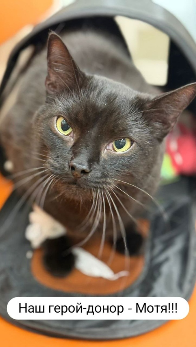 Мотя, который когда-то вырос из котёнка, выброшенного в коробке у моего дома. Мотя вырос сильный, ласковый, большой. Теперь он наш герой. Несколько раз он уже становился донором, и вчера вновь - он спас жизнь брату по несчастью.