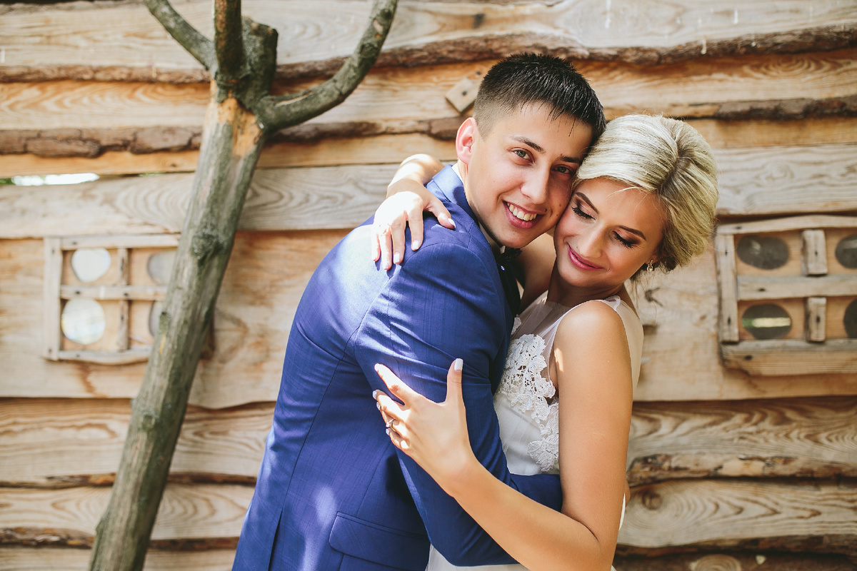 Не успел я и рта раскрыть, как меня буквально поволокли к центральному входу ресторана, где на ступеньках выстроились гости для общей фотки. В центре стоит молодая пара — красивая невеста в белом платье-облаке и жених в тёмно-синем костюме.