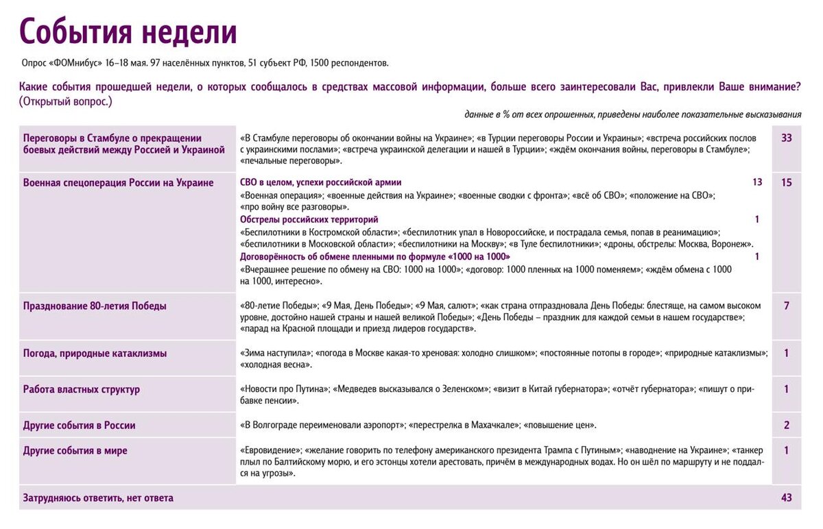 Результаты еженедельного опроса 16 – 18 мая 2025 года.