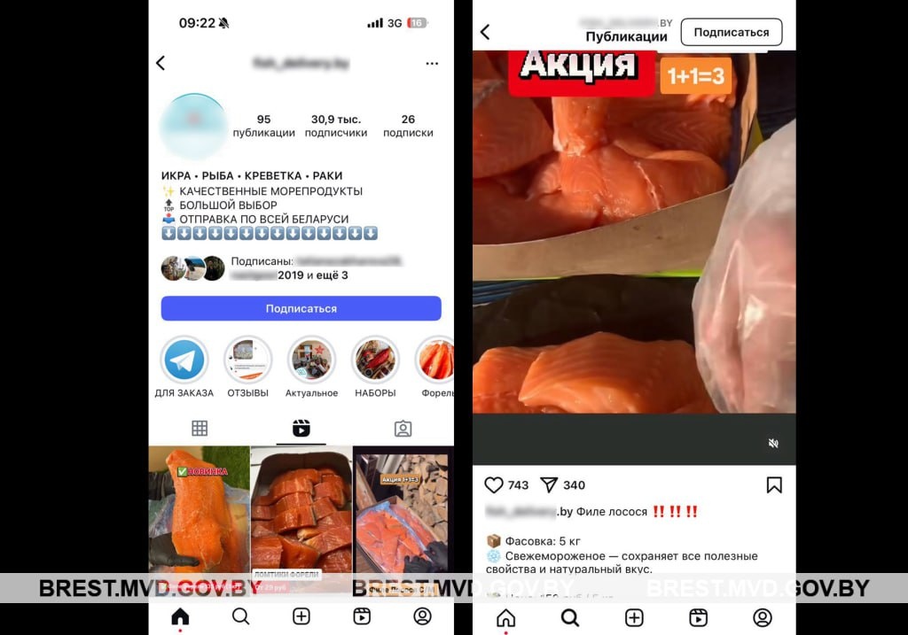 🐟Попалась «рыбка» на рыбку #Милиция_Беларуси #Кибербезопасность 🔴Красная рыба – популярный товар. Может быть ценным источником питательных веществ, полезных для здоровья человека, а может – предметом слез и потерь, ведь является одной из многочисленных приманок, используемых мошенниками для обмана граждан. 👮🏻♀️Не нова история 53-летней брестчанки, которая решила приобрести ценную рыбу с помощью интернет-магазина. Торговую площадку нашла в сети Инстаграм, где продавец предлагал скидки при заказе большого количества рыбы и обещал ящик рыбы весом 10 кг продать за чуть более чем за 200 рублей. ⚠️Соблазнившись заманчивым предложением, сдобренным яркими фотографиями и видеофрагментами, женщина решила сделать покупку, для чего связалась с продавцом. 📱Дальнейшее общение продолжилось в мессенджере, где продавец потребовал за покупку стопроцентную предоплату. Ничего не заподозрившая покупательница перевела на предоставленный счет почти 300 рублей за заказ. ⚫️Ожидание покупки осталось
