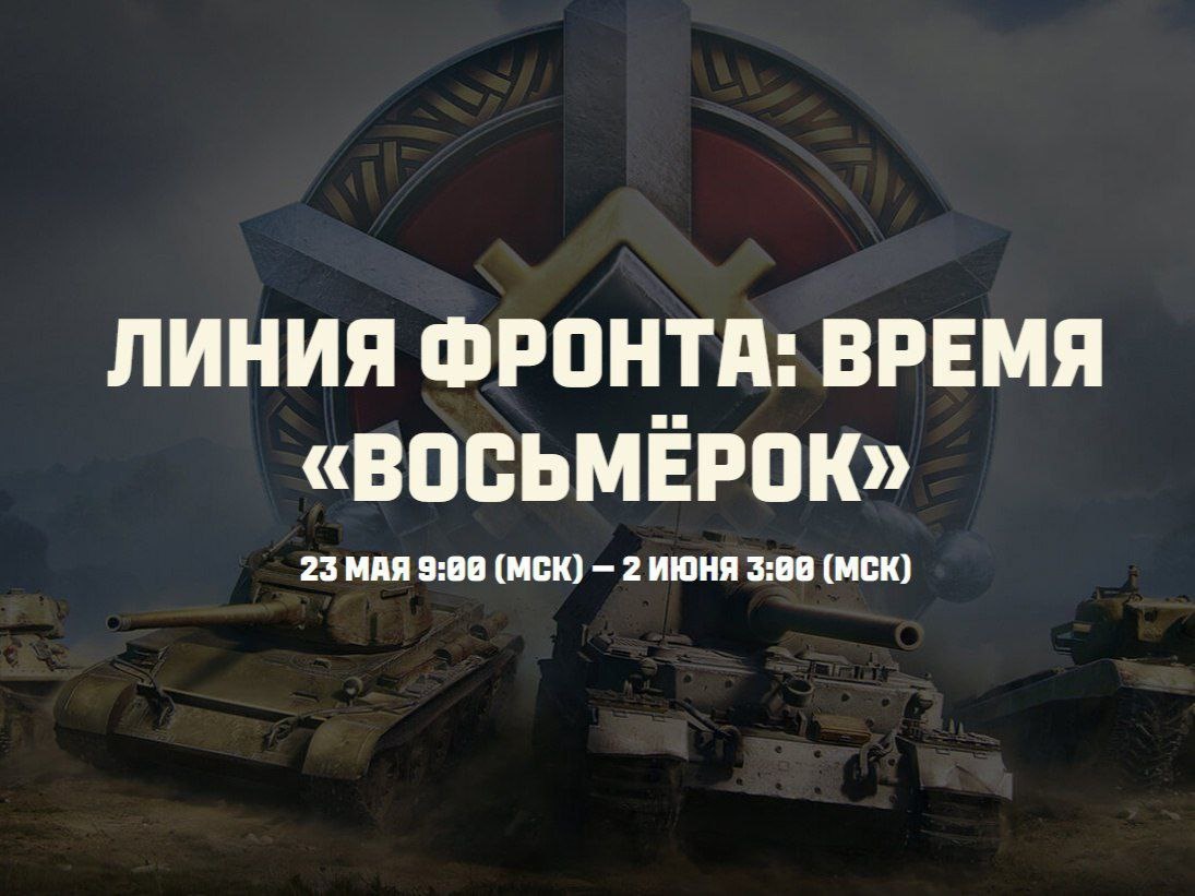 🆎🆎🆎🆎🆎 Линия фронта на танках VIII уровня стартовала! ♻️ Возвращаемся на огромные поля сражений, над которыми возвышаются мощные орудийные башни! 👍 Заезжайте в зоны обслуживания, не забывайте про резервы и помогайте союзникам. Даже уничтожение танка не станет помехой — выбирайте новую машину и возвращайтесь в бой. 💥 Сосредоточьтесь на пяти крупнокалиберных орудиях в тылу команды обороны. Атакующей команде нужно уничтожить три орудия из пяти, а обороняющейся — защитить башни любой ценой. 🎁 Награды прогрессии: 🆕 Очки Боевого пропуска (количество увеличено), ⛓ Боны, 🆔 Универсальное пособие, ♓️ Учебные брошюры, ☪️ Бланки переподготовки, 🔰 Предбоевые инструкции, 🗞 Очки боевых резервов. ❗️ В боях может участвовать вся техника VIII уровня, кроме Объекта 156 О, из-за его роли огнемётной САУ