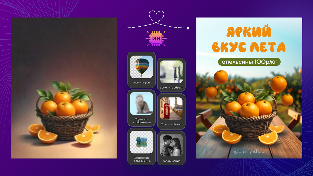 Удобство использования. Одна платформа для всей работы с изображениями. Без скачиваний, без сложных интерфейсов, без лишних расходов.