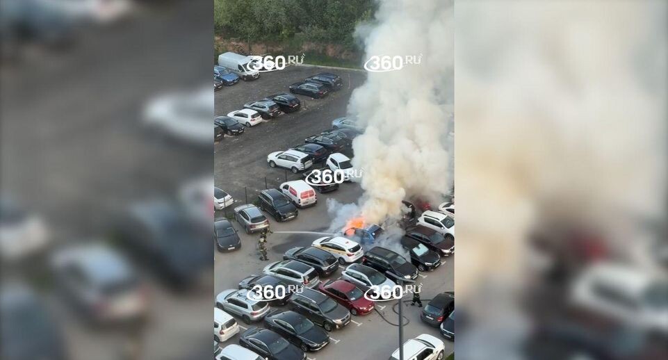 Пожар, повредивший сразу три машины на парковке в Одинцове, сняли на видео