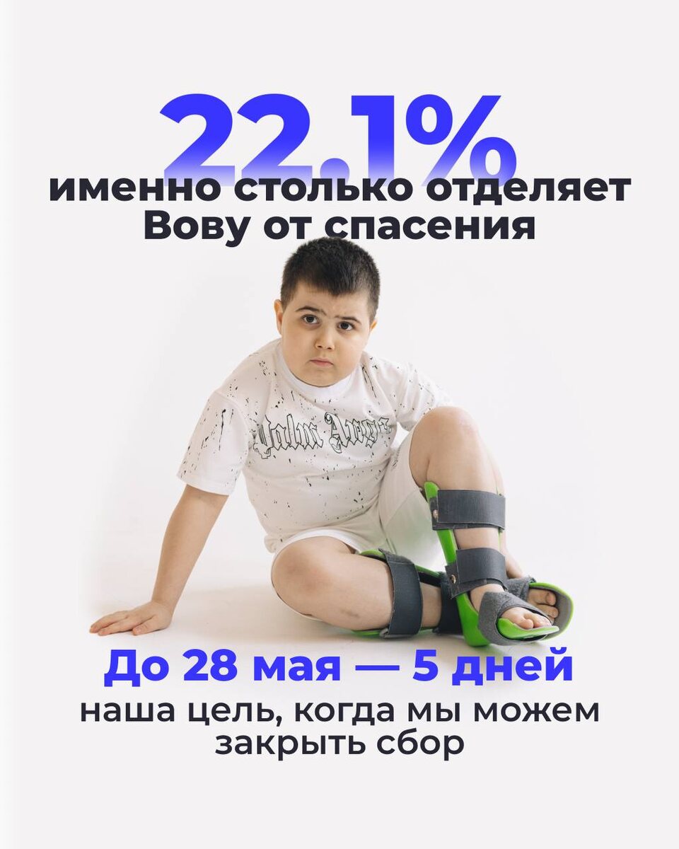 Нам нужна максимальная огласка, чтобы спасти Вову. Прошу каждого🙏🏻 Возьмите любое видео с нашей страницы и сделайте репост! Только так мы сможем победить в этой борьбе. ⏳5 ДНЕЙ 👥115 786 человек по 500 руб 🚨 или любая посильная сумма Сейчас на счету каждый день. Вова Соловьев, 8 лет, Диагноз: Миодистрофия Дюшенна. Все документы, фонды и перевод с зарубежных карт по ссылке в описание @savevova2024 Сумма сбора: 262 000 000руб. Осталось собрать: 57 892 624руб. Реквизиты: Перевод по номеру тел.+7(918)499-99-81 Заира Масхудовна С. (Мама) СБЕР В комментариях к платежу: Вове на лечение. 🔵Благотворительный фонд имени Петра Минеева 🔵 Благотворительный фонд «Дом «ИНСИТИ»