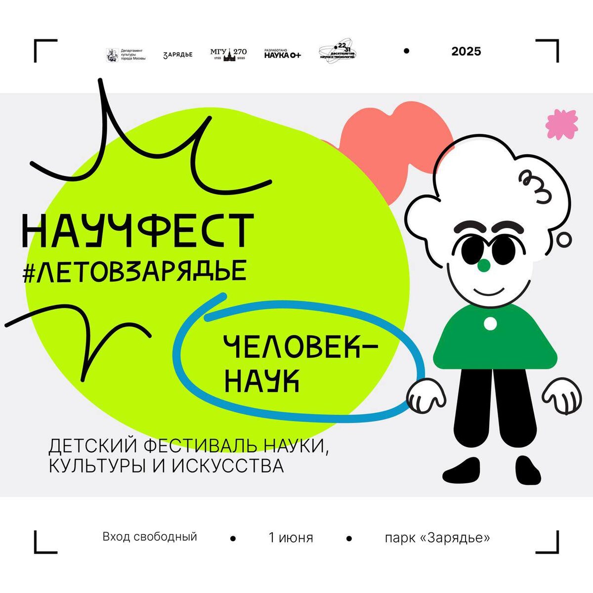🆓НАУЧФЕСТ от @festivalnauki Человек-наук: наука и искусство в одной пробирке 1 июня, в День защиты детей, в парке "Зарядье" состоится масштабный фестиваль "НАУЧФЕСТ. Человек-наук". Название фестиваля – не просто слова, а глубокая метафора, отражающая суть современной науки. "Человек-наук" – это образ исследователя-героя, способного совершать настоящие чудеса. Подобно супергерою, ученый обладает силой менять мир к лучшему, решая сложные задачи современности: от поиска новых источников альтернативной энергии до освоения космических просторов и разгадки тайн древних цивилизаций. Сегодня каждый человек может стать таким "супергероем науки". Профессия ученого открывает безграничные возможности для реализации самых смелых идей и амбиций. Фестиваль про то, что наука – это не просто профессия, а настоящее призвание, которое позволяет воплощать в жизнь самые невероятные проекты и делать мир лучше. Фестиваль предлагает насыщенную программу, охватывающую самые разные направления современной н