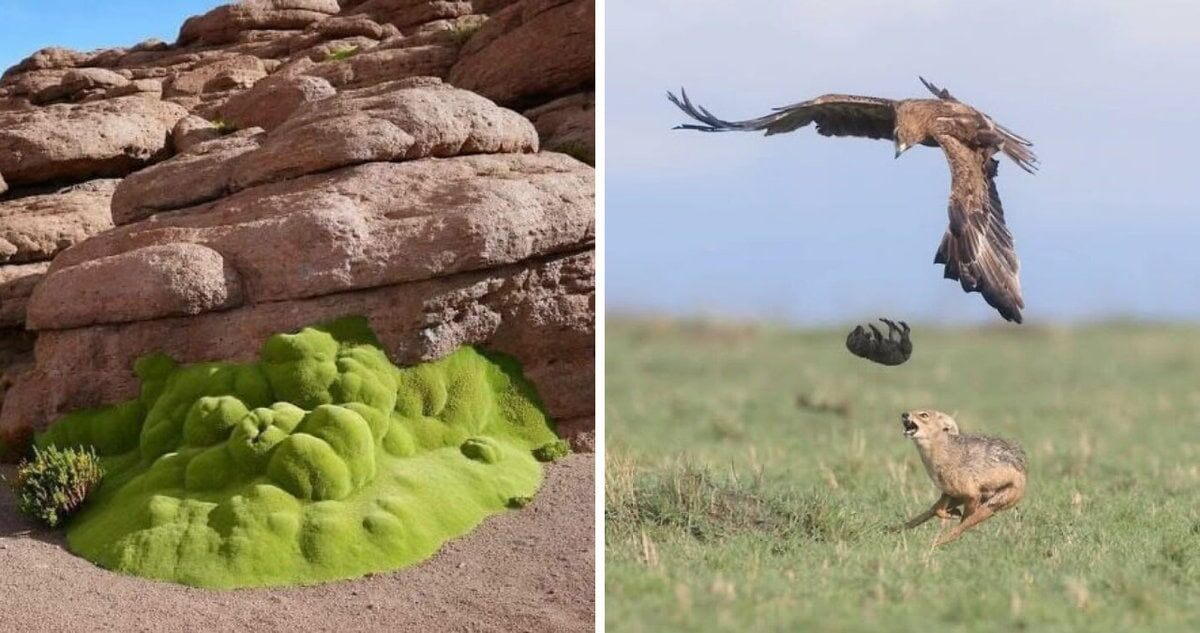 Фотография запечатлела момент, когда мать-шакал преследует орла, похитившего ее детеныша. Снимки были сделаны фотографом, который оказался в нужном месте в нужное время, чтобы запечатлеть шакала в действии. Как вы можете видеть на снимке, природа жестока, но на этот раз жуткая история имела счастливый конец. Место действия — национальный заповедник Масаи-Мара в Кении, где орел пролетел над маленьким детенышем шакала и унес его. Однако мать животного пряталась и не позволила своему щенку потеряться. Известно, что после этого действия шакал не только спас своего, казалось бы, невредимого щенка, но и смог спрятать его в пещере от браконьеров.