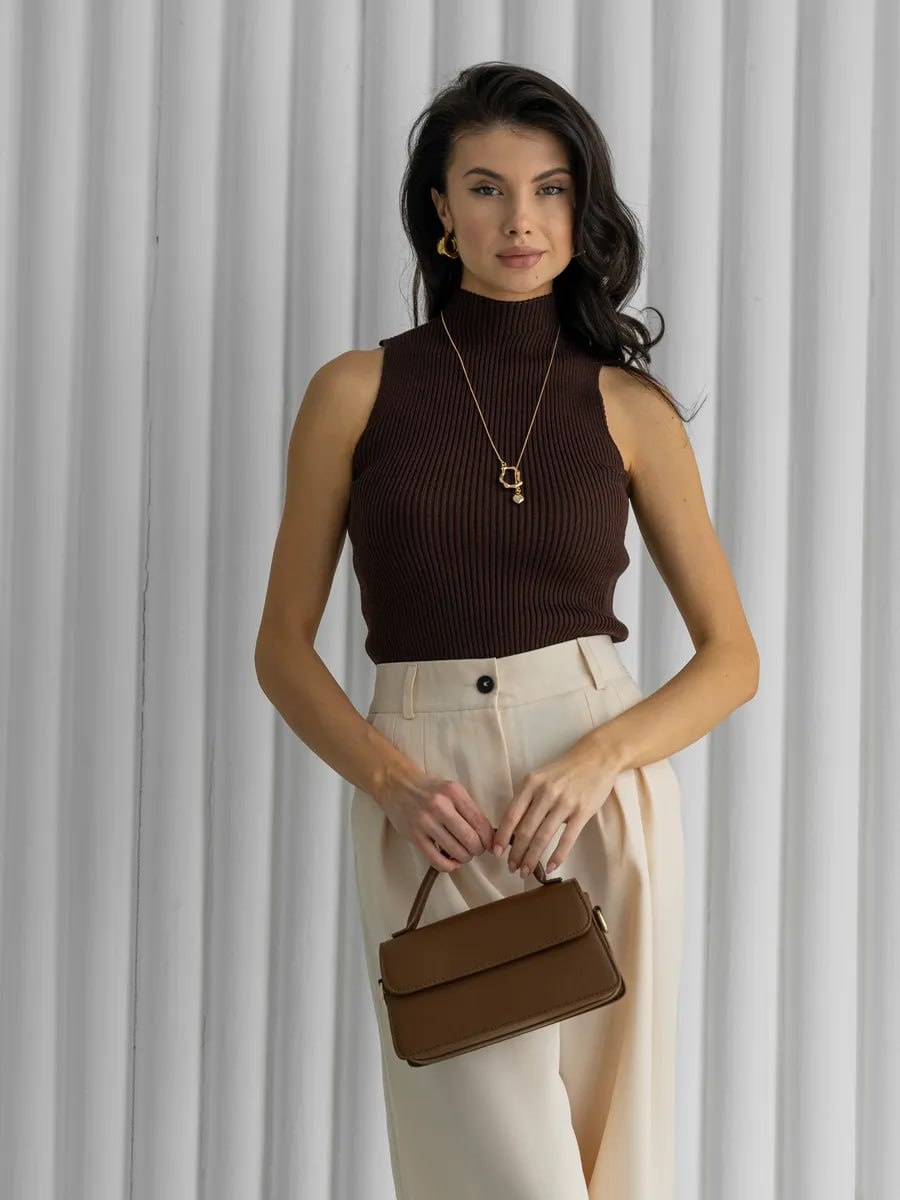 Стильный топ без рукавов, отличная замена однотонным базовым футболкам. Идеально подходит под пиджак создавая стильный офисный образ, также можно комбинировать с джинсами и кроссовками для повседневного выхода.