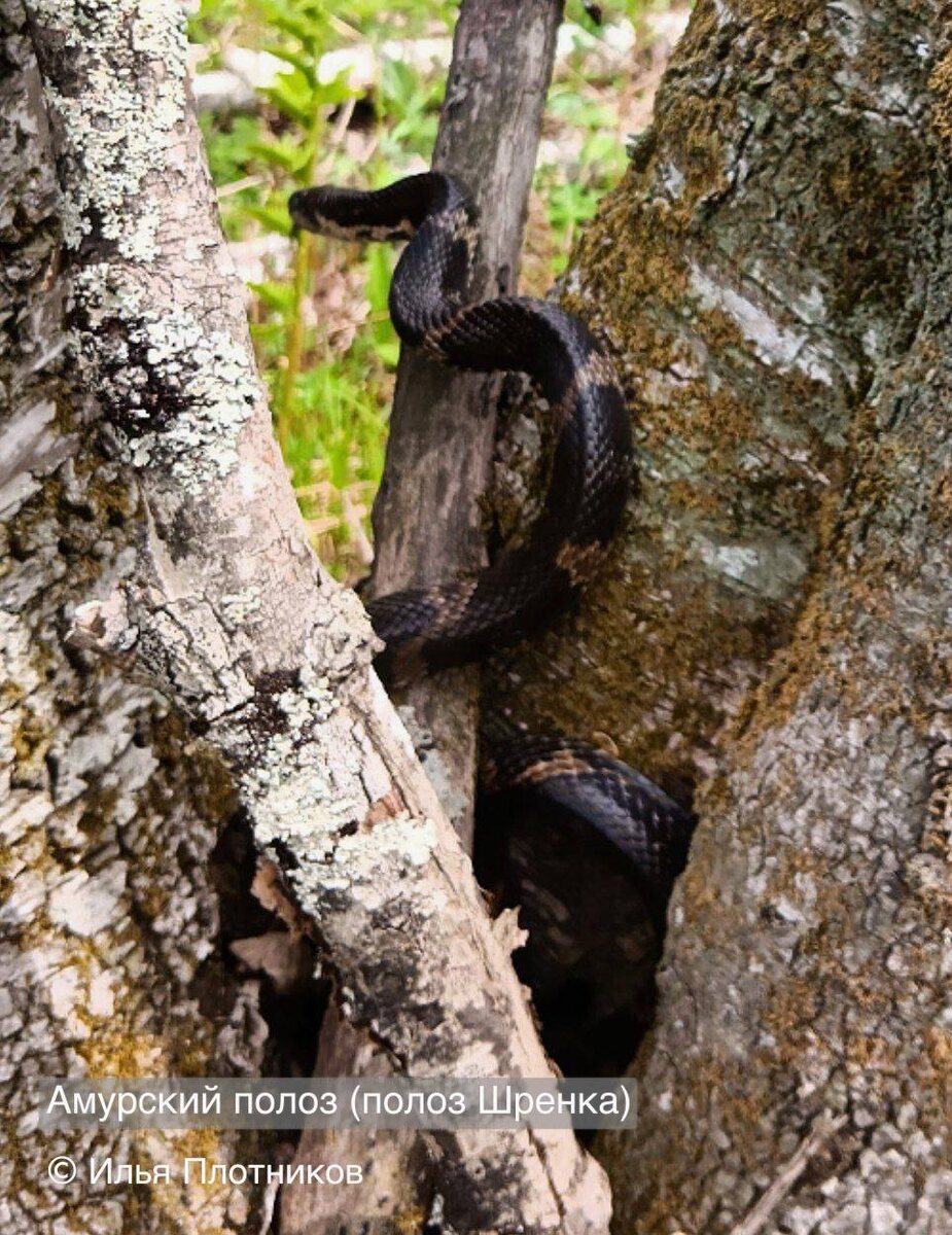Хладнокровная встреча 🐍 На кадрах сотрудника «Земли леопарда» Ильи Плотникова — большой амурский полоз и его сородич поменьше. Амурский полоз (полоз Шренка) — это одна из самых крупных змей России, вырастает более 2 метров и при этом активно лазает по деревьям. По белой пелене на глазах можно сделать вывод, что полоз готовится к линьке. Интересно, что молодые особи имеют другой окрас, полностью имитирующий окрас среднего щитомордника, который ядовит и опасен для человека. 🐾 Здесь «Земля леопарда» 🐾