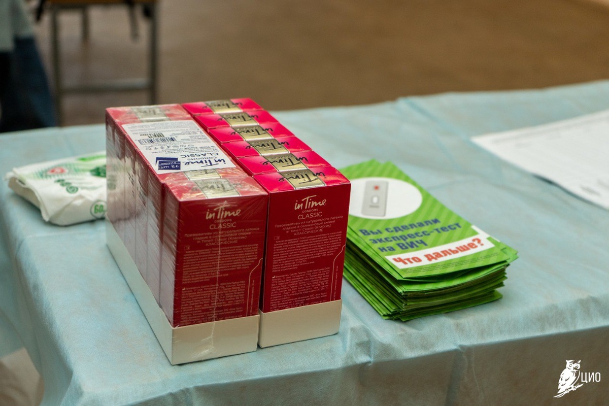 Также, на входе, ребята из Молодежного добровольческого центра "Лес рук", проводят акцию - информирование про ВИЧ и СПИД.