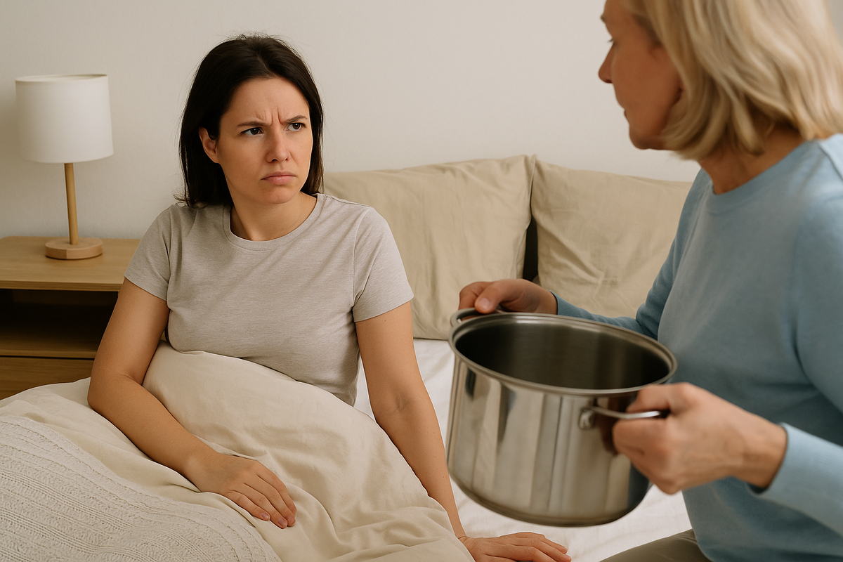 #обсудим — Представь, — говорит, — только заехали в квартиру. Всё в коробках, спим на матрасе. Кухни нет, только чайник и два стула. И тут — звонок в дверь. Свекровь. С кастрюлей щей и пакетом всего подряд. — Я вам привезла, а то вы, наверное, голодаете. Ну окей. Думаешь: забота. Но потом начинается. — А у вас тут посуду не моют, да? — Пол как будто не мыт… — Ты вообще сегодня что-то готовила? И добивает: — Ты чего лежишь, у тебя муж голодный. — Я, — говорит подруга, — стою и не понимаю, что происходит. Это вроде мой дом. Но ощущение, как будто меня в нём не существует. Муж молчит. Она хозяйничает. И всё — «по-доброму». Вечером она ему говорит: — Слушай, ты вообще это нормально воспринимаешь? Он: — Ну это мама. Она же всех так строит. Не парься. А она ему: — А если я не «всех»? С тех пор, говорит, «просто по пути в магазин» больше никто не заезжает. А кастрюля — это теперь символ. Что ты либо варишь, потому что хочешь. Либо не варишь. И никто не имеет права в это лезть. У