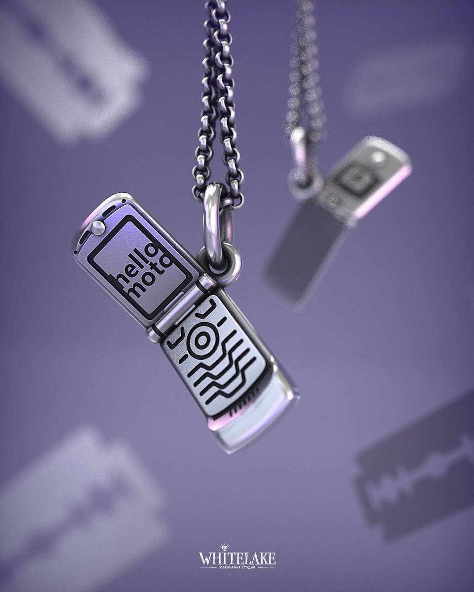 Прикол, ностальгическую подвеску в виде раскладушки Motorola Razr V3 выпустили ювелиры из White Lake. Такие есть и в серебряном, и в золотом варианте.