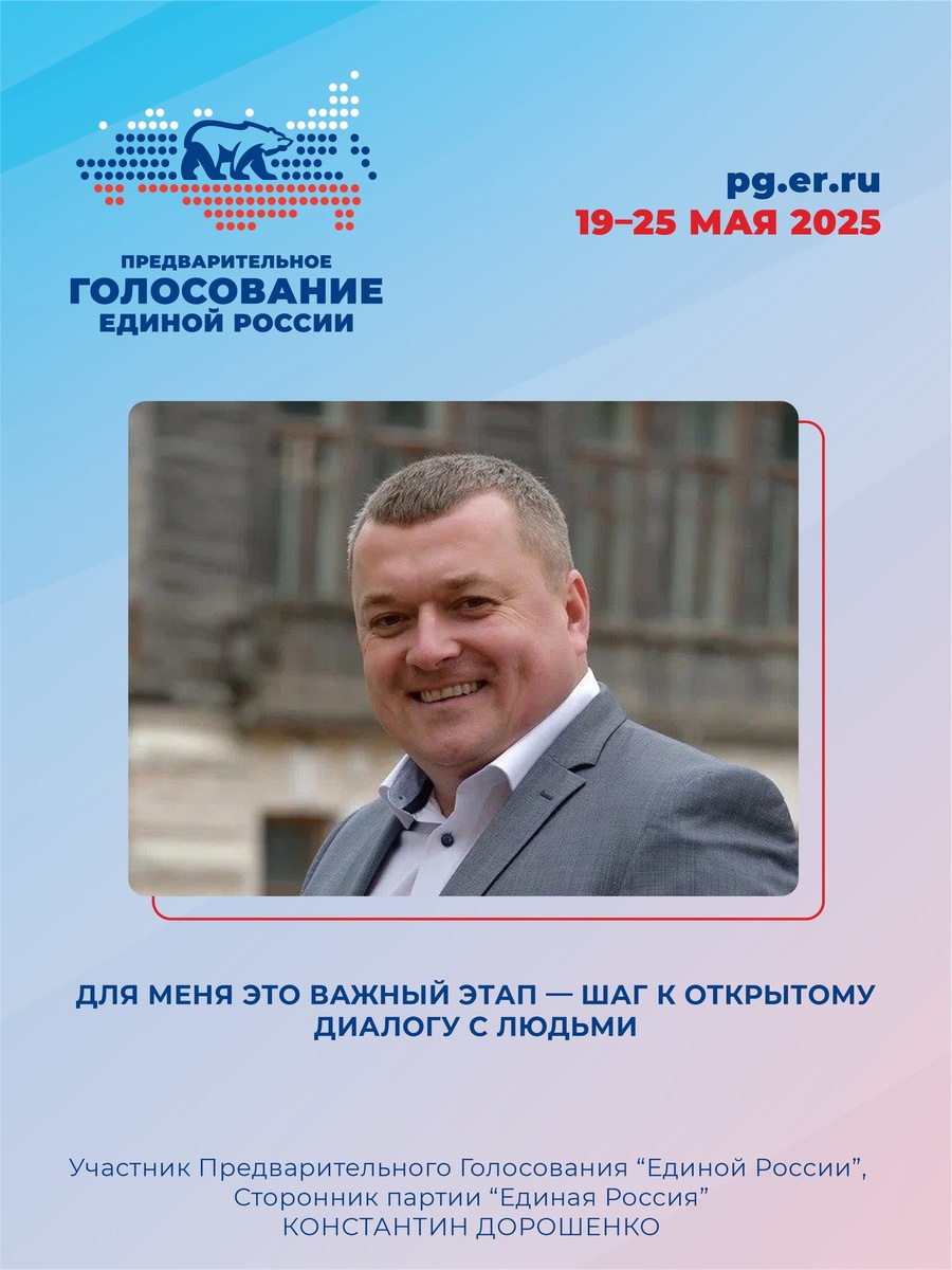 ✅Участник предварительного голосования по одномандатному избирательному округу № 22, сторонник партии "Единая Россия" Константин Дорошенко поделился мнением о Предварительном Голосовании.