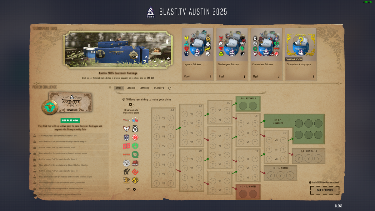 Austin 2025 Viewer Pass обойдётся вам в 810₽ Austin 2025 Viewer Pass + 3 Souvenir Tokens обойдутся вам в 1460₽ Также добавили 4 капсулы к турниру Austin 2025 Legends Sticker Capsule: 81₽ Austin 2025 Legends Autograph Capsule: 81₽ Austin 2025 Challengers Sticker Capsule: 81₽ Austin 2025 Challengers Autograph Capsule: 81₽ Austin 2025 Contenders Sticker Capsule: 81₽ Austin 2025 Contenders Autograph Capsule: 81₽ Austin 2025 Souvenir Package: 245₽ будет добавлена позже Champions Autographs (coming soon) в данный момент недоступна.