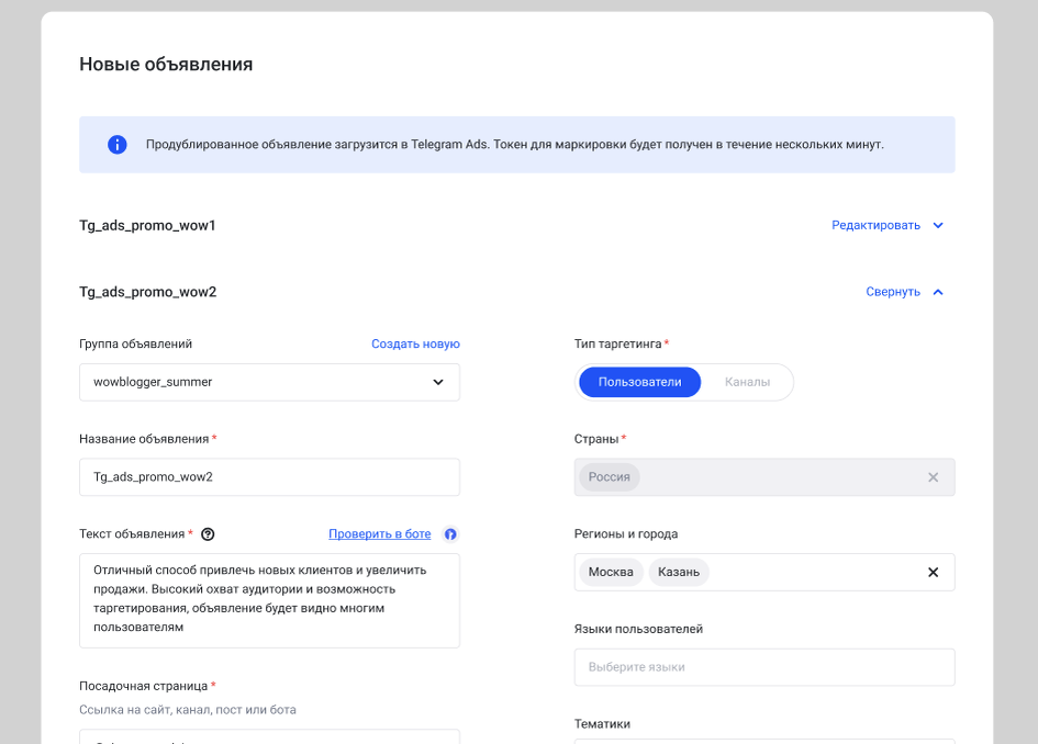 Реклама. ООО АДВ-сервис, erid: 2SDnjeYaoZP Платформа управления рекламой eLama представила инструмент для анализа и управления кампаниями в Telegram Ads TG Настрой. Он объединяет все важные опции для работы с кампаниями и закрывает любые потребности, которые могут появиться при запуске и ведении кампаний в мессенджере – от массовых операций до агрегированной статистики. При разработке эксперты eLama собрали все рабочие решения на рынке и улучшили их. TG Настрой получился стабильным, быстрым и удобным инструментом. Он бесплатный, его могут использовать рекламодатели Telegram Ads с кабинетами от eLama. TG Настрой подойдет и профессионалам в рекламе, которые хотят избавиться от рутины и расширить свои возможности, и новичкам, которые хотят стартовать в Telegram Ads без сложностей, многочисленных проб и ошибок. Возможности нового инструмента от экспертов eLama: Всё, что нужно, чтобы получить доступ к инструменту – аккаунт Telegram Ads в eLama. И это далеко не вся польза от такого аккаунта!
