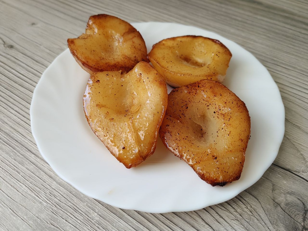 Простой и вкусный десерт, который съели за пять минут (даже остыть не успел)😅 Купили груши, но они оказались жёсткими. Чтобы не ждать, когда дозреют, решили сделать из них десерт. Груша с мёдом и корицей 🍽 2-3 груши почистить, разрезать на половинки, удалить сердцевину. Обмазать медом, посыпать сахаром с корицей. Запекать при t 180 градусов 35-40 минут. Приятного аппетита!👩🍳 #рецепт_от_Юли@na_grani_veselya