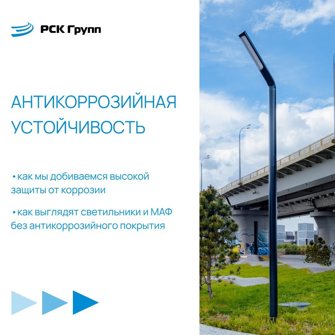 Как мы обеспечиваем антикоррозийную защиту? Для защиты уличных светильников и малых архитектурных форм от коррозии мы применяем два проверенных метода: 1. Горячее цинкование. Обеспечивает прочное антикоррозийное покрытие цинковым слоем при температуре 450-460°С. ✳️ Изделия обрабатываются цинком как снаружи, так и внутри. Реакция на молекулярном уровне гарантирует полное покрытие, без швов и границ. 2. Полимерно-порошковая покраска. Добавляет дополнительный уровень антикоррозийной защиты. ✳️ Порошковая окраска увеличивает стойкость к воздействию атмосферных осадков и придаёт изделиям прочность, а также создаёт привлекательный внешний вид. В условиях долгосрочной эксплуатации в различных климатических условиях изделия требуют надежной антикоррозийной защиты. Наши изделия могут функционировать в температурном диапазоне от -60 до +50°С. Мы производим качественное освещение и малые архитектурные формы. Закажите для своего объекта: рскгрупп.рф