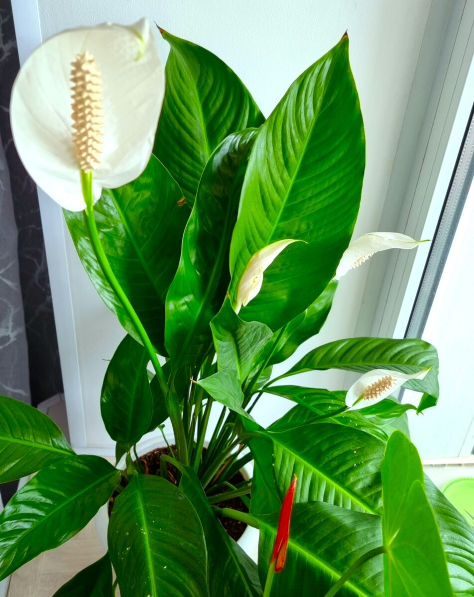 Спатифиллум часто радует своих хозяек пышными зелёными листьями, но не хочет цвести. Есть способ заставить этот цветок выпустить изящные цветоносы с белыми прицветниками, которые как паруса будут возвышаться над пышной зеленью и принесут своим владелицам счастье! Спатифиллум часто отказывается цвести, многие это растение считают капризным и пытаются создать для цветка наиболее благоприятные условия. Мы выбираем для спатифиллума качественный грунт, стараемся поливать правильно, подбираем место с хорошим освещением без сквозняков и обязательно регулярно подкармливаем. При таком уходе спатифиллум выдаёт большие изумрудные листья, но цвести не хочет, поэтому растение нужно «испугать» или создать лёгкий «стресс». «Стресс» стимулирует растение продолжить свой род, дать семена и после «испуга» растение быстро выпускает красивые высокие цветоносы с соцветиями-початками. На моём опыте, после «стресса» у спатифиллума появляются цветоносы через месяц. Конечно, такие меры не должны навредить расте