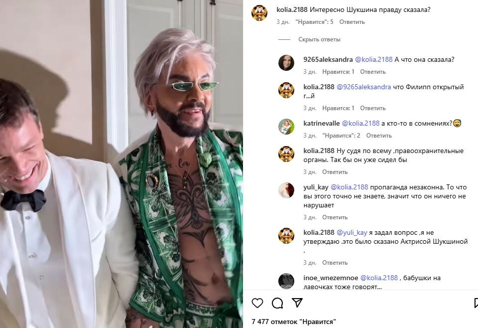 "Филипп сейчас находится под наблюдением врачей. Он взял небольшой отпуск, чтобы вылечить последствия ожога. Это всё-таки не шутки. Как только ситуация стабилизируется, наш любимый Филипп Бедросович вернется к работе и продолжит радовать всех своим творчеством", — заверил "СтарХит" адвокат Александр Добровинский, словно вынося окончательный приговор всем спекуляциям.