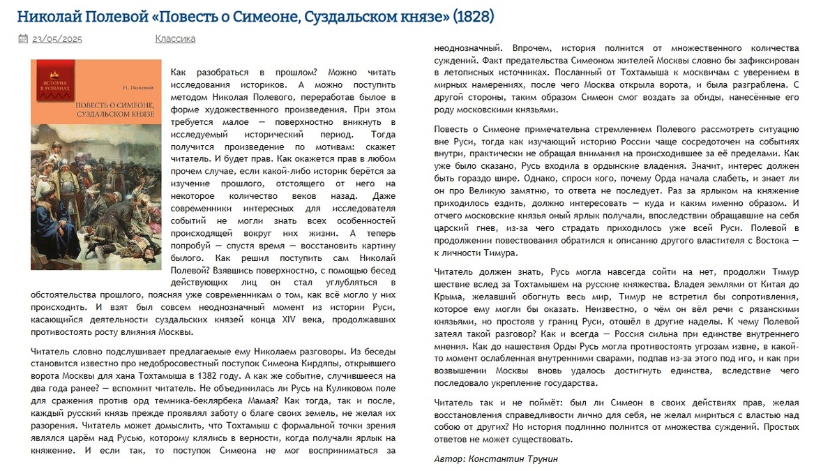 Н. Полевой "Повесть о Симеоне, Суздальском князе" (1828) | Критика