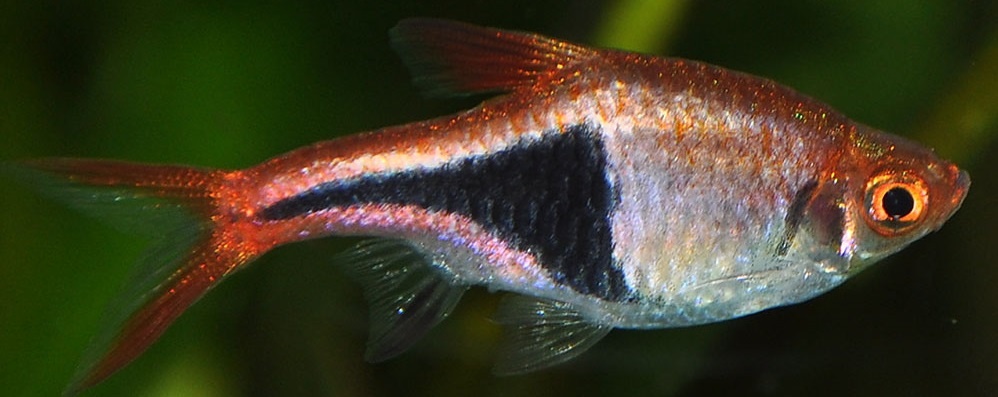 Отличить рыбок просто. Самцы ярче окрашены, а у самок более округлый живот. Клин у самцов более острый и тонкий, у самок – округлый.