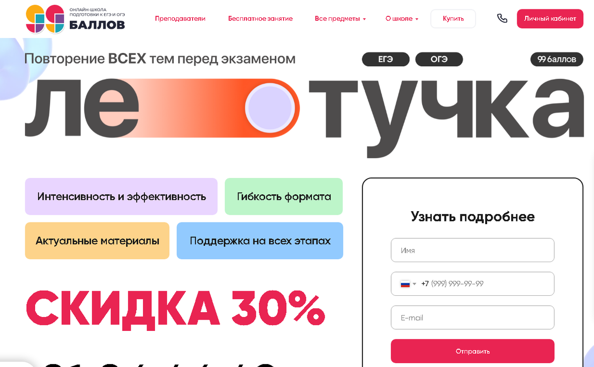 Возможности и функционал личного кабинета 99 баллов