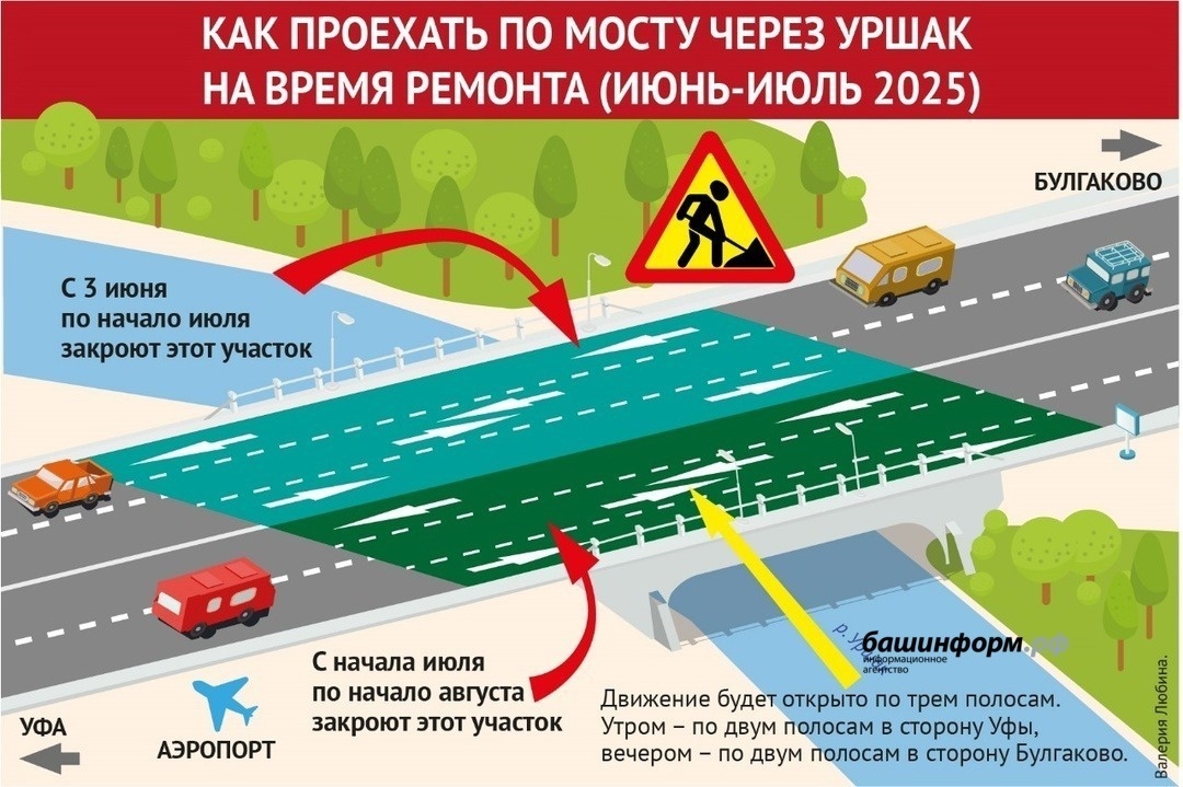 С 3 июня начнутся ремонтные работы моста через реку Уршак, расположенного под Уфой. Как сообщает «Башинформ», в настоящее время подрядчики устанавливают дорожные знаки и основы для светофоров. Работы будут проводиться круглосуточно в две смены, без выходных. Основная часть ремонта запланирована на июнь и июль, а завершение работ намечено на середину августа. Мост будет частично закрыт. Для автомобилистов останется три полосы движения, а светофоры будут регулировать трафик. Движение по средней полосе будет реверсивным: утром две полосы будут открыты для въезда в Уфу, а вечером — для выезда из города. Мост, построенный в 1980 году около Булгаково на федеральной трассе Р-240, находится в предаварийном состоянии. Последний ремонт проводился в 2014 году. По результатам обследования в 2023 году были выявлены многочисленные дефекты. Глава Башкирии Радий Хабиров на правительственном совещании в апреле подчеркнул, что затягивать ремонт больше нельзя из-за интенсивного трафика. По его поручению