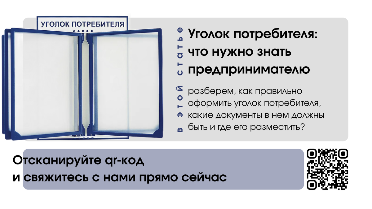 Уголок потребителя — обязательная часть любого бизнеса, будь то ресторан, магазин или даже онлайн-платформа. В этом уголке собирается вся информация, которую предприниматель обязан предоставить своим клиентам. Это требование закона «О защите прав потребителей». Если уголок не оформлен должным образом, бизнесу могут грозить штрафы. Читайте до конца — и узнайте, как упростить этот процесс с помощью автоматизации для бизнеса. Уголок потребителя — это специальное место, где покупатель может найти всю информацию, необходимую для защиты своих прав. По сути, это инструмент, который помогает клиенту быть уверенным в своих правах, а бизнесу — избежать штрафов и претензий со стороны контролирующих органов. Если уголок потребителя не оформлен или в нем неправильная информация, это может привести к штрафам от Роспотребнадзора: Малый бизнес — 15.000-20.000 рублей Крупный бизнес — до 40.000 рублей Руководитель компании — 3000-4000 рублей Всего этого можно избежать, если правильно оформить уголок и
