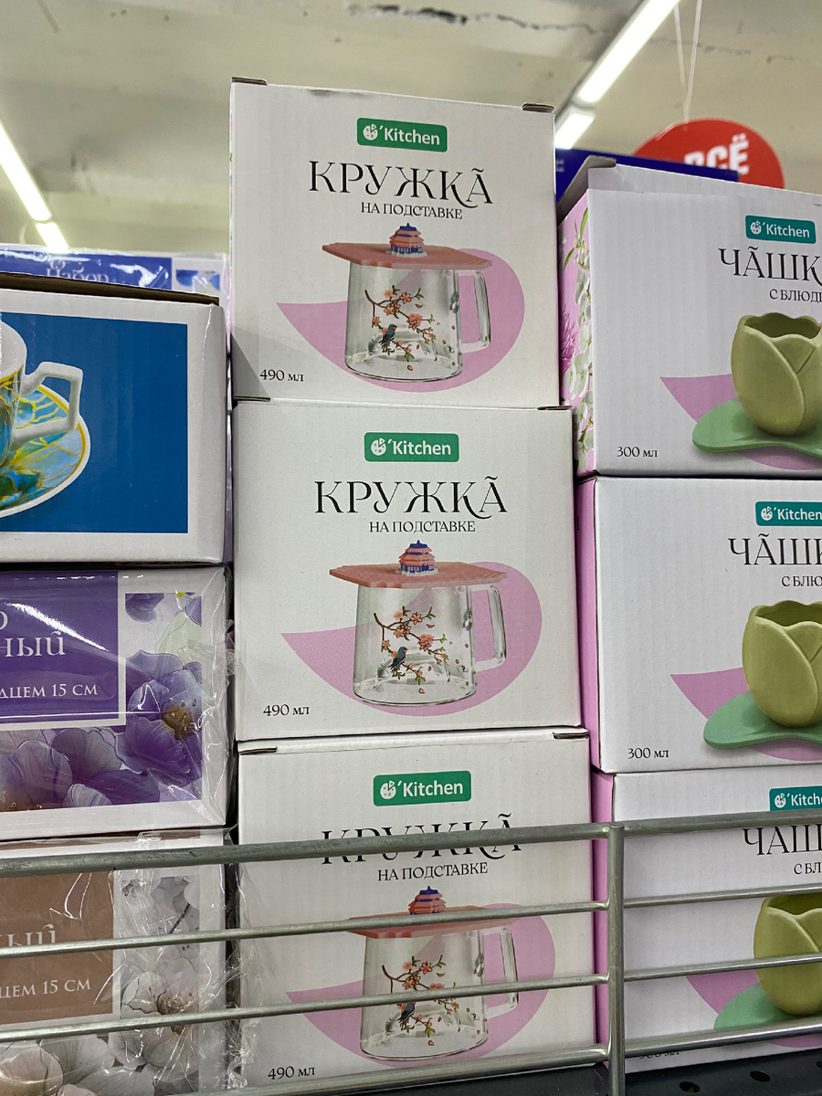 1. Кружка на подставке. Очень милая и красивая кружечка, которую можно преподнести как в качестве подарка, так и себе любимому приобрести. Объем кружечки составляет 490 мл., изготовлена из боросиликатного стекла и силикона. Цена 399 рублей.
