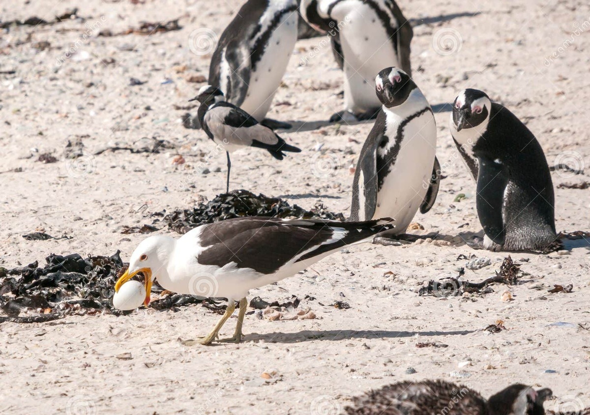 С суши и с моря, с неба и из глубин — на пингвинов ведётся настоящая охота. Хоть они и мастера маскировки и скорости, врагов у них хватает. И это не только зубастые хищники, но и те, кого ты вряд ли заподозришь. Чайки и поморники🦅 Эти «пираты побережья» атакуют не в одиночку. Чайки часто отвлекают взрослых пингвинов, а другие в это время воруют яйца. Поморники действуют жёстче — они охотятся на птенцов, вырывая их прямо из гнезда. Факт: одна чайка может украсть до 10 яиц за сезон. Крысы, кошки, собаки🐁 Завезённые на острова человеком, они охотятся ночью, гнездящиеся птицы не готовы к такому врагу. Маленькая колония может исчезнуть за пару лет. Морской леопард🦭 Мастер засады. Он прячется в мутной воде у края льда, подплывает снизу и хватает пингвина за лапы, утаскивая вглубь. Иногда он играет с добычей, подбрасывая тело вверх, прежде чем съесть. Косатки🦈 Их тактика — команда: создают волну, чтобы сбросить пингвинов с льдины, или загоняют их в угол. Особенно опасны для императорских