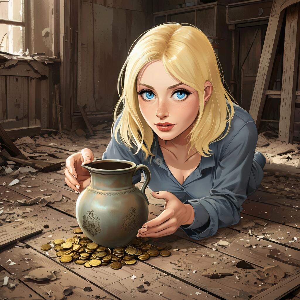 - Я нашла. В кухне. Кувшин с монетами.