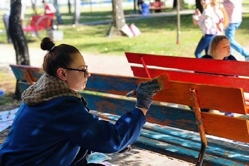 Кто привёл в порядок скамейки в парке в Гомеле? Узнавайте подробности