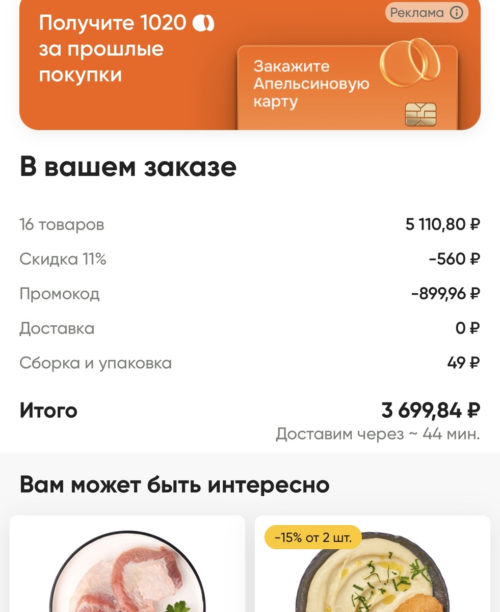 Заказ у меня проучился на 5000. Почему-то ещё вылезла скидка на 11%