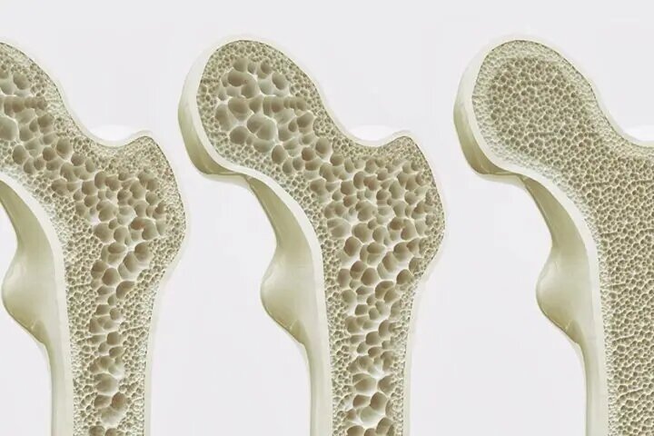 Остеопороз – системное заболевание скелета, характеризующееся снижением костной массы и нарушением микроархитектоники костной ткани, что приводит к повышенной хрупкости костей и риску переломов. 1. Первичный остеопороз (наиболее частый – 80-85% случаев): 2. Вторичный остеопороз (15-20% случаев): Нарушение баланса между остеобластами и остеокластами: - При дефиците эстрогенов ↑ активность остеокластов → усиленная резорбция кости. - При старении ↓ активность остеобластов → замедленное костеобразование. Дефицит кальция и витамина D: - Нарушение всасывания кальция в кишечнике (при гиповитаминозе D). - Гиперпаратиреоз → усиление резорбции кости. Глюкокортикоидный остеопороз: - Подавление остеобластов, ↑ апоптоз остеоцитов, ↓ всасывание Ca²⁺ в кишечнике. Двухэнергетическая рентгеновская абсорбциометрия (DXA, денситометрия) – измерение минеральной плотности кости (МПК) Дополнительные методы: Лабораторная диагностика: Рентгенография (при переломах, но низкая чувствительность для ранне