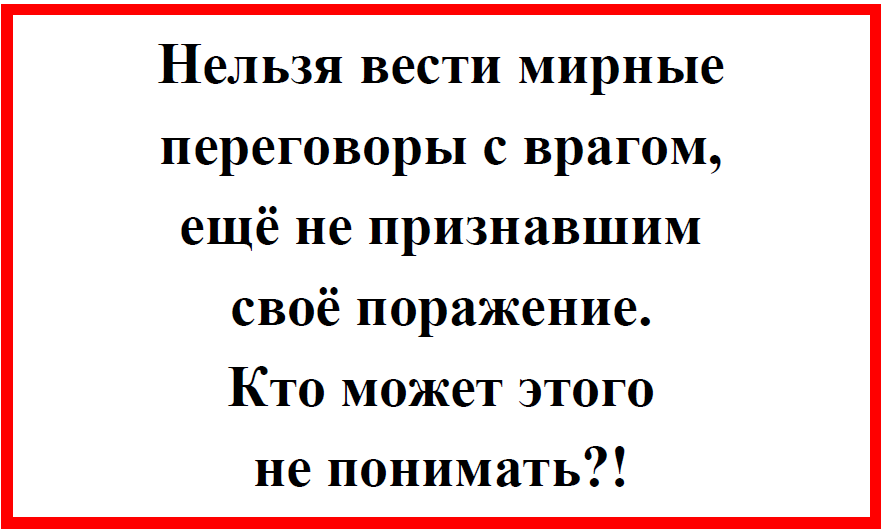 Нельзя вести мирные переговоры с врагом, ещё не признавшим своё поражение. Кто может этого не понимать?!