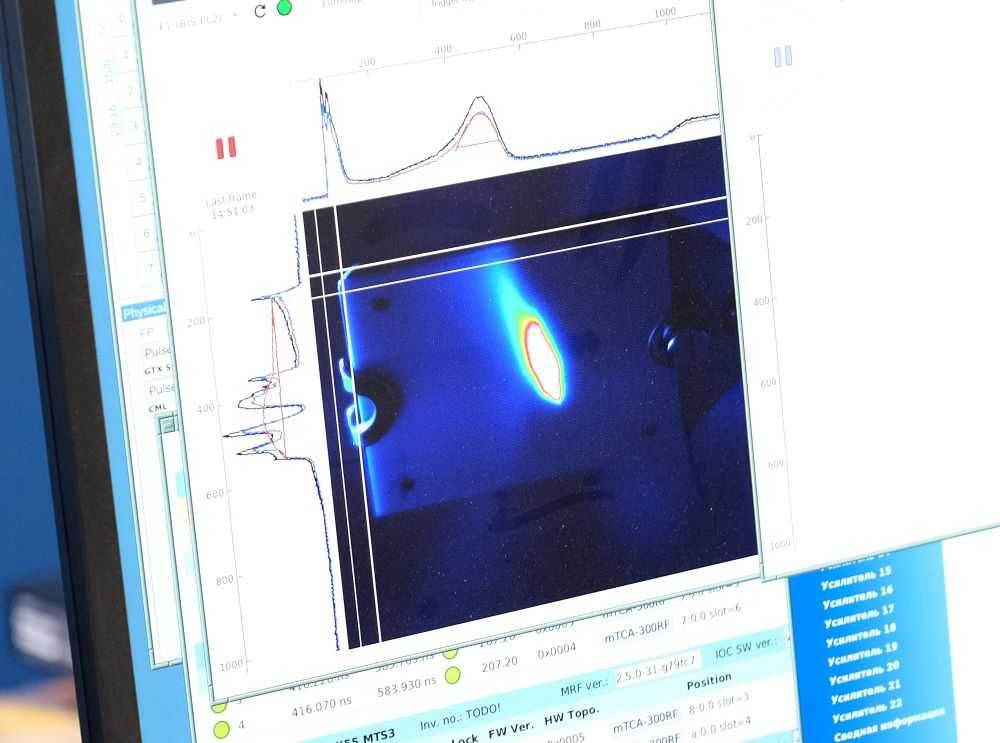 После установки всех элементов ВЧ-системы бустера, физики приступили к ее настройке. Отмечу, что резонаторы с уникальными характеристикам разработаны и изготовлены специалистами ИЯФ СО РАН. Высокочастотные усилители мощности, питающие резонаторы созданы предприятием радиоэлектронной промышленности ООО «НПП Триада ТВ». Электроника, входящая в состав комплекса управления высокочастотной системой, собрана в ИЯФ СО РАН и работает благодаря программному обеспечению, созданному Институтом автоматики и электрометрии СО РАН. Как видите, все разработки – отечественные.