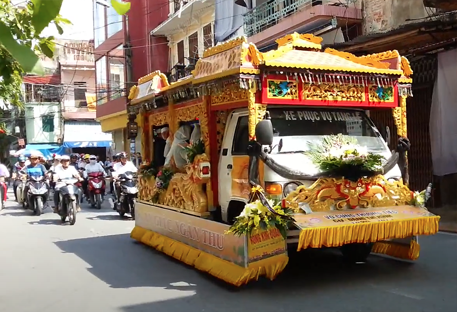 78. Отношение вьетнамцев к смерти совершенно отличается от привычного нам взгляда. Здесь смерть не трагедия, а освобождение от тяжелых трудов жизни. Ведь, по мнению вьетнамцев, после смерти душа покидает тело и отправляется в иной мир, полный покоя и света. Именно поэтому похороны во Вьетнаме выглядят необычно для посторонних глаз. Народ собирается большими группами, нарядно одетые участники сопровождают гроб ярким шествием с музыкой и песнями. Нередко танцоры в ярких костюмах драконов и черепах двигаются впереди колонны, создавая атмосферу праздника. Участникам прощания важно показать радость и облегчение, будто бы приветствуя нового члена своей семьи, перешедшего в лучший мир. Семейные друзья и соседи приходят разделить горе и одновременно выразить радость за близкого человека, который наконец-то освободился от забот. Часто кажется, что родные искренне наслаждаются праздником. Однако за внешним весельем скрыта глубокая внутренняя боль утраты. Семья действительно тяжело переживает пот