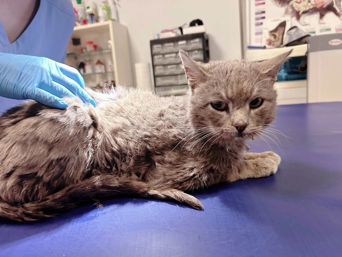 Итак, Бродяга съездил в больницу. Худой, даже истощённый, глисты, блохи — всё как положено. Самое плохое — это отечная, воспалённая зона губ и зона миндалин, а также глубокая разлитая язва на языка. Сейчас два варианта: кальцивироз или последняя стадия ХПН, когда язык разъедает почечными токсинами. Надеюсь, всё-таки кальц, его мы с большой долей вероятности вылечим. Хвост крючком из-за застарелой травмы, но не перелом, а скорее повреждение седалищного нерва или травма тазовых костей — деформированы связки. Котей так устал во время приёма, что заснул как только от него отстали прямо на столе. Потратили на анализы 5350. Все лекарства в наличии, покупать ничего не надо, кроме Тёмы. Бродяге очень больно есть, ему вообще очень больно, надо давать ему самую мягкую еду, буду предлагать паштет Шеба, он очень нежный (есть) и Тёму (куплю). Как хорошо, что я вчера пошла в магазин!