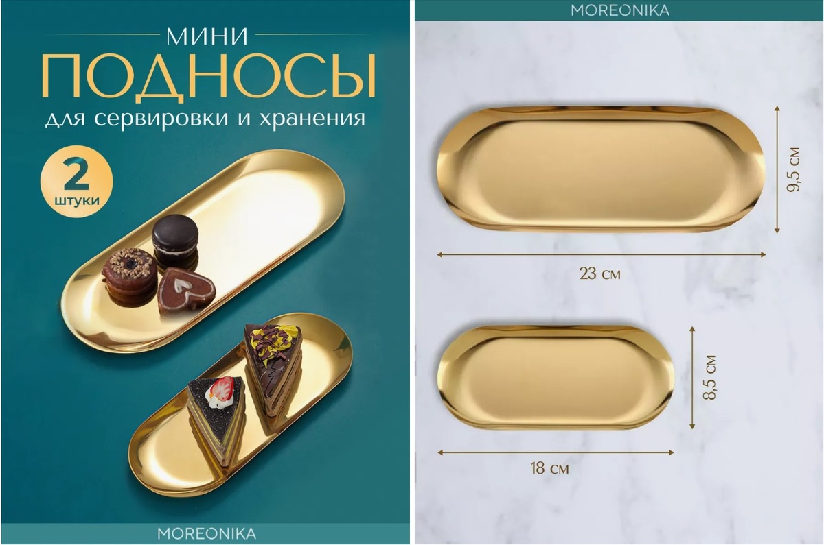 Сочетание металла и золотого цвета привлекает внимание и создаёт ощущение роскоши. Это не только красиво, но и практично. Металлические подносы прочны и долговечны, не бьются, что позволяет использовать их в любых условиях.
