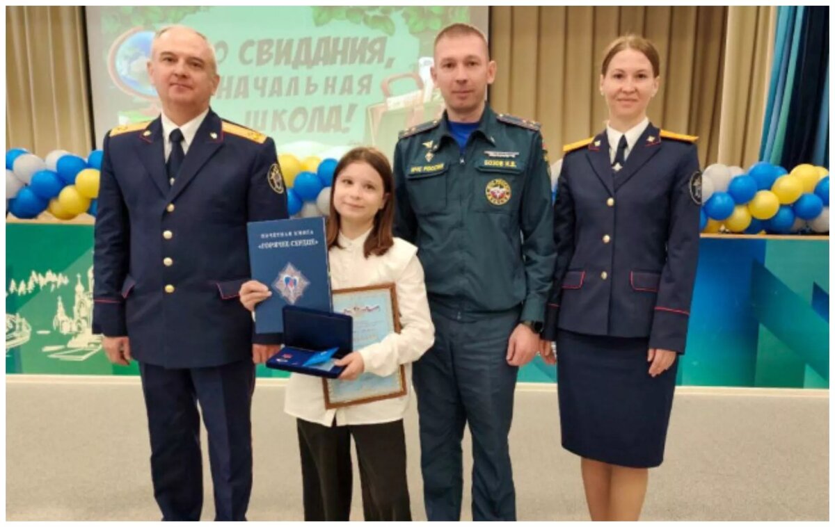 Юной героине вручили заслуженную награду — нагрудный знак «Горячее сердце». Также она получила диплом и почетную книгу. Торжественную линейку провели в школе № 8.