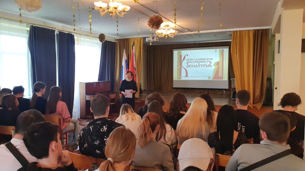 В преддверии Дня славянской письменности и культуры сотрудники Тучковской детской библиотеки провели для студентов тучковского филиала Красногорского колледжа литературно - познавательный час "Откуда Азбука пошла". Ребята совершили увлекательное путешествие в историю славянской письменности, вспомнили о первых учителях славянских народов - святых равноапостольных братьях Кирилле и Мефодии: создателях славянской азбуки, проповедниках христианства, ставших первыми переводчиками богослужебных книг с греческого на славянский язык. Мы рассуждали с подростками о том, как меняется наш язык, о чистоте и красоте родной речи, о том, что украшает её и что обедняет. Вместе сделали вывод - грамотное владение речью служит показателем не только речевой, но и общей культуры человека.