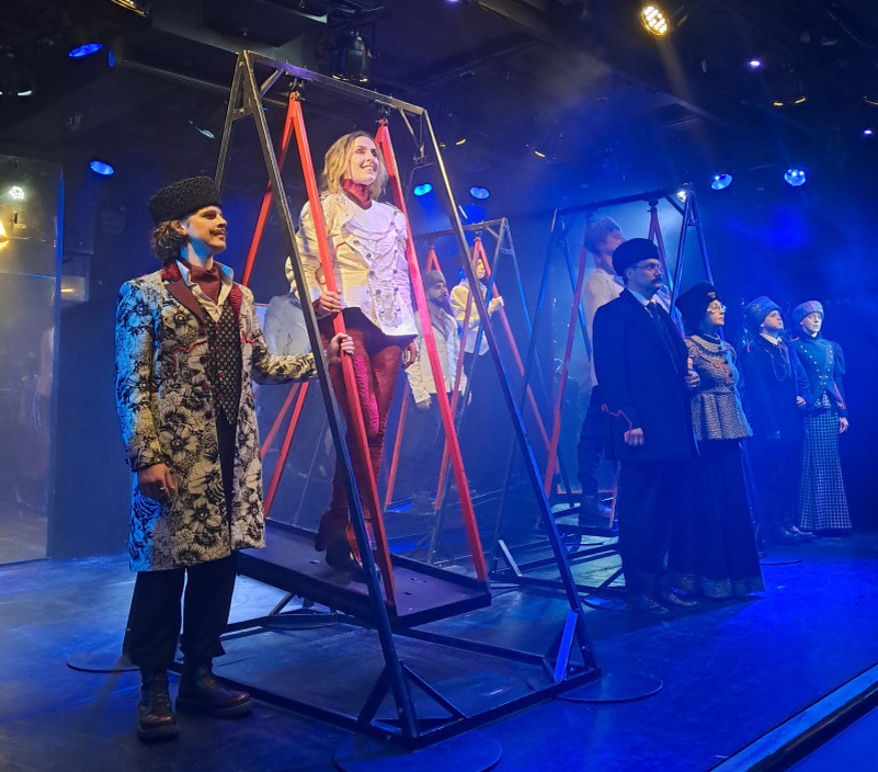 Долго я собиралась доехать до Театра на Юго-Западе, чтобы посмотреть постановку Олега Анищенко «Анна Каренина», и вот это наконец произошло. И мне спектакль очень понравился (хоть и были в первом действии попытки сравнить с вахтанговской версией). Сюжет думаю пересказывать смысла нет, но здесь повествование начинается с конца, мы сразу оказываемся на поминках Анны, где Стива Облонский (Антон Белов) произносил траурную речь. Уже потом мы видим развитие сюжета — знакомство Анны (Любовь Ярлыкова) и Вронского (Максим Метельников), сватанье Левина (Игорь Степашин) к Китти (Анна Рыкова), а затем и развитие любовных линий. Как же мне понравился тандем Ярлыковой и Метельникова, очень красивая пара, особенно сцены страсти и выяснения отношений, в их любовь верилось. Наблюдать за терзаниями Анны, особенно когда муж грозит тем, что не отдаст ей ребенка, а затем за страданиями, когда кажется, что Вронский её не любит, было больно. Не могу не написать про двух прекрасных дам, Бэтси — Карина Дымонт