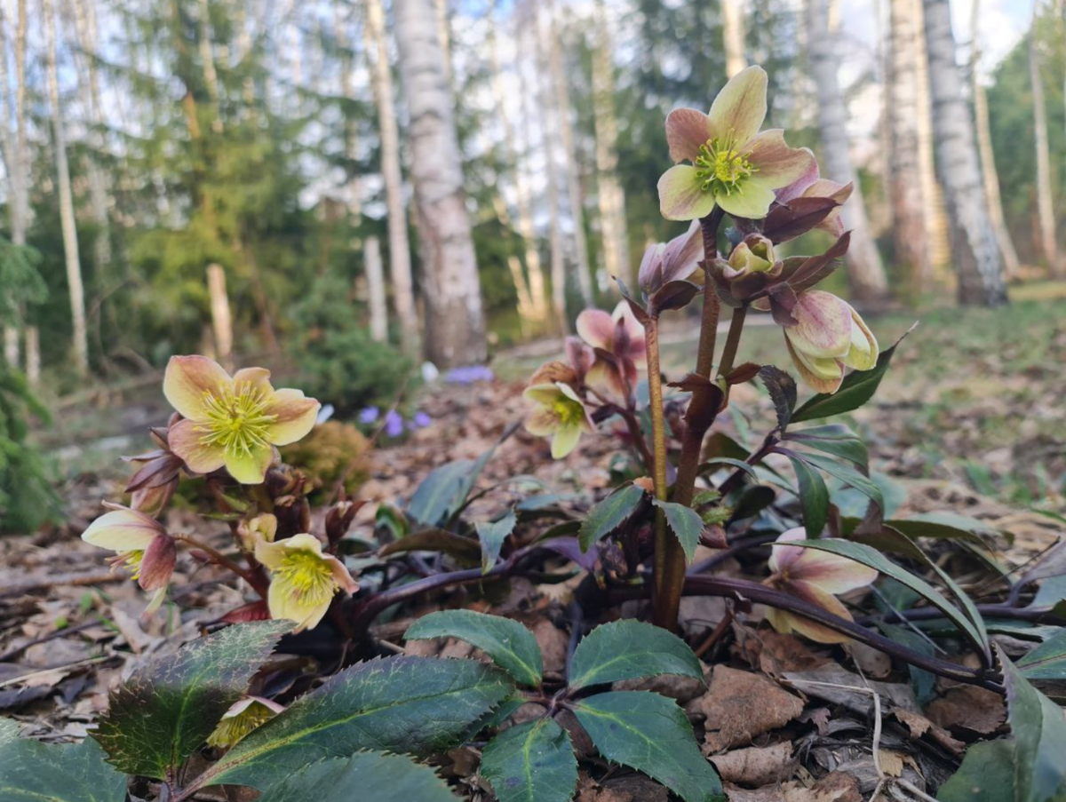 Морозники конечно не имеют такого разнообразия окрасок как классические весенние цветы типа тюльпанов, да и яркость оттенков у них совсем не та. Но в какой-то момент из минуса для меня это превратилось в плюс: оттенки морозников оказались очень естественными и органично вписались в пейзаж, а такое я люблю)
