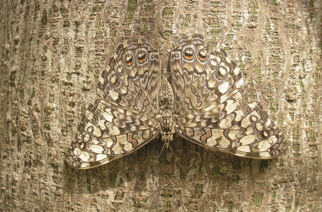 Некоторые виды бабочек: Например, представители семейства Nimphalidae часто имеют причудливые узоры на крыльях, которые помогают им сливаться с мозаичным рисунком света и тени в лесу.