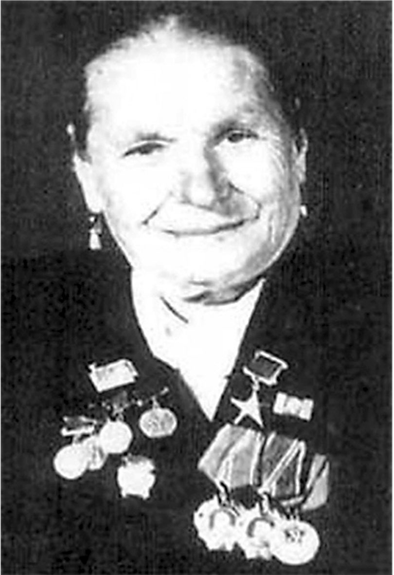- Четыре медали, три бронзовых и одну золотую, я получила за высокие урожаи овощей. Первый орден Ленина мне вручили в 1947 году за скоростную уборку зерновых. Я за 18 часов 10 тысяч снопов овса связала. В 1965 году собрала с каждого гектара 390 центнеров помидоров, 800 центнеров капусты, 400 центнеров огурцов, много свеклы, моркови. И мне сразу дали много наград: Золотую Звезду, 2-й орден Ленина и звание Героя Социалистического Труда. Серебряная медаль — за успехи в выращивании сахарной свеклы. Ну, а эти награды поменьше: значок ударника коммунистического труда, два значка «Отличник сельского хозяйства» и другие. 64 премии имею от колхоза. А теперь новый дом поставили, скотину дали. Всего и не перечтешь. Счастья мне в семейной жизни не было, зато в работе я его нашла. Счастье мне Советская власть дала.
